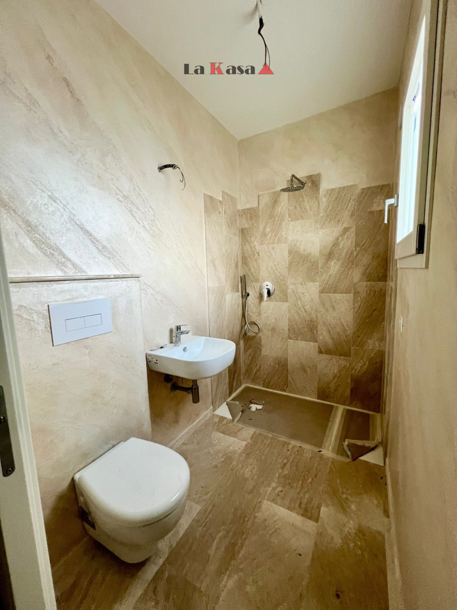 Die Anlagen sind modern und nachhaltig: kein Gas, mit Vorbereitung für Wärmepumpe, Photovoltaikanlage und Induktionsküche. Jeder Raum ist für TV und Datennetzwerk vorverkabelt, während die verwendeten Materialien – wie Marmor aus Orosei oder hochwertiges Feinsteinzeug – den mediterranen Stil und die Bauqualität unterstreichen.