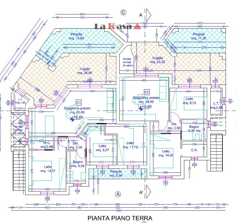 Die Loggia und Pergola von 40 qm schenken einen überdachten Außenbereich, perfekt für Mittag- und Abendessen oder einfach für entspannte Momente. Das helle und einladende Wohnzimmer öffnet sich in einen geselligen Raum, der zum Herzstück des Hauses wird.