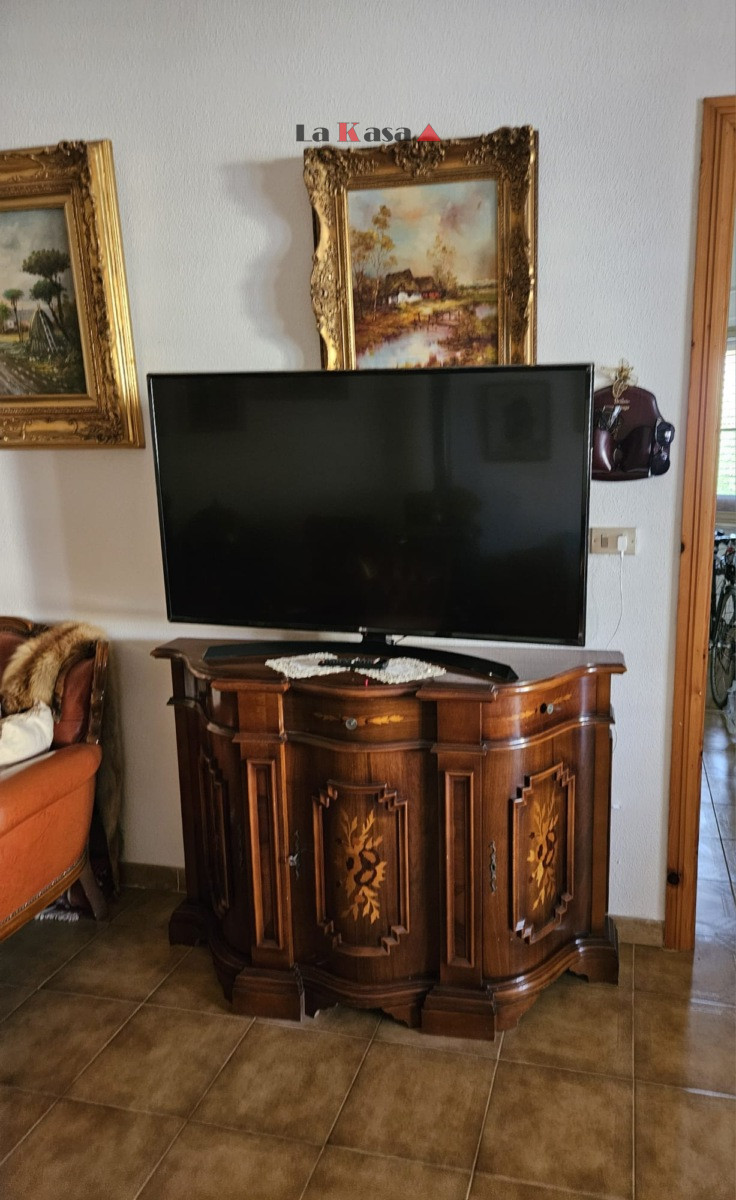 From the living room, one enters a room that the family chose to use as an additional reception lounge. The sleeping area, accessible through a hallway, offers three very spacious bedrooms—one with a private bathroom—and a main bathroom complete with a bathtub.