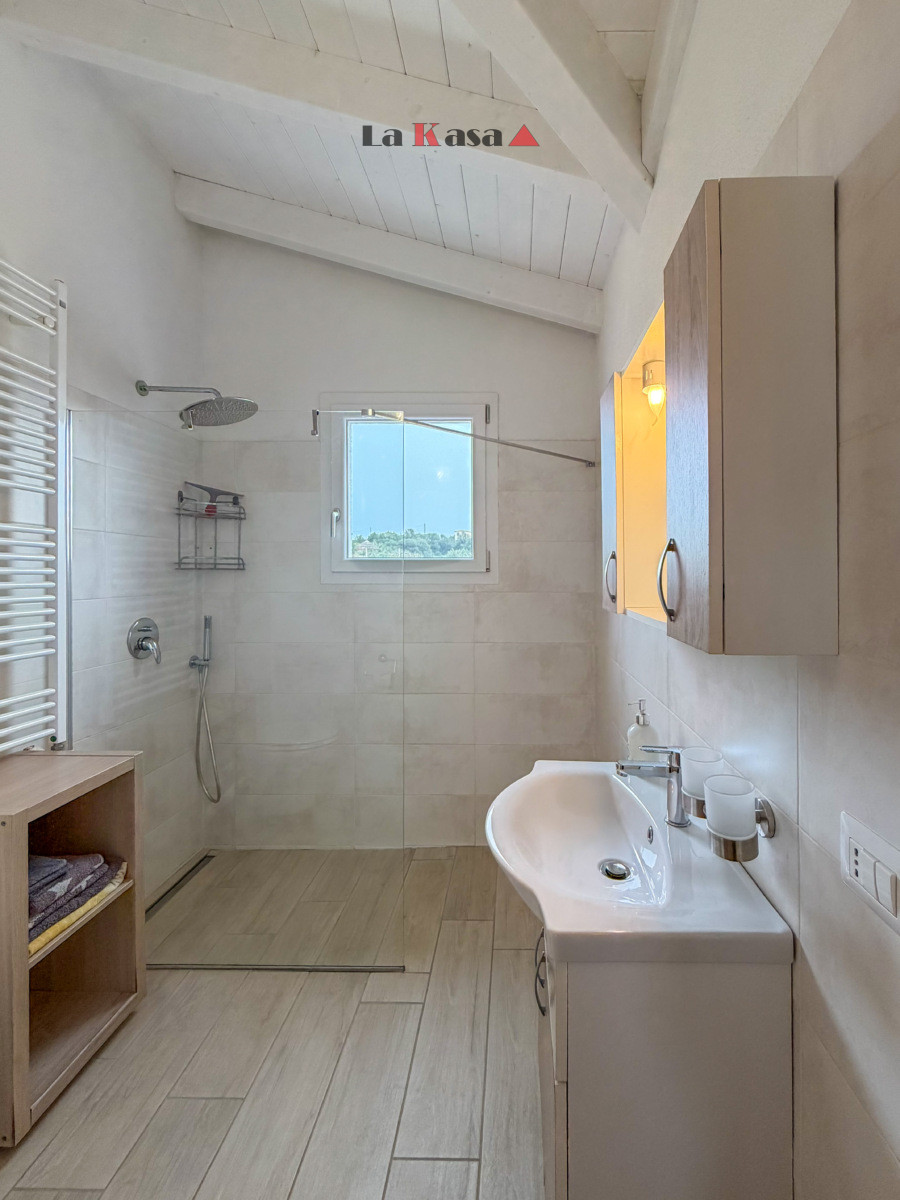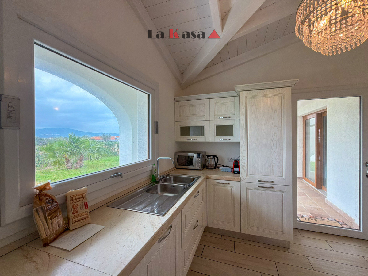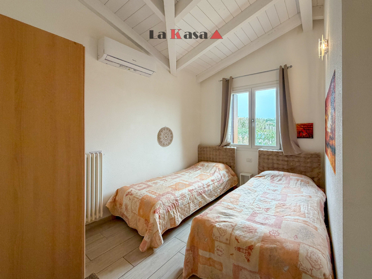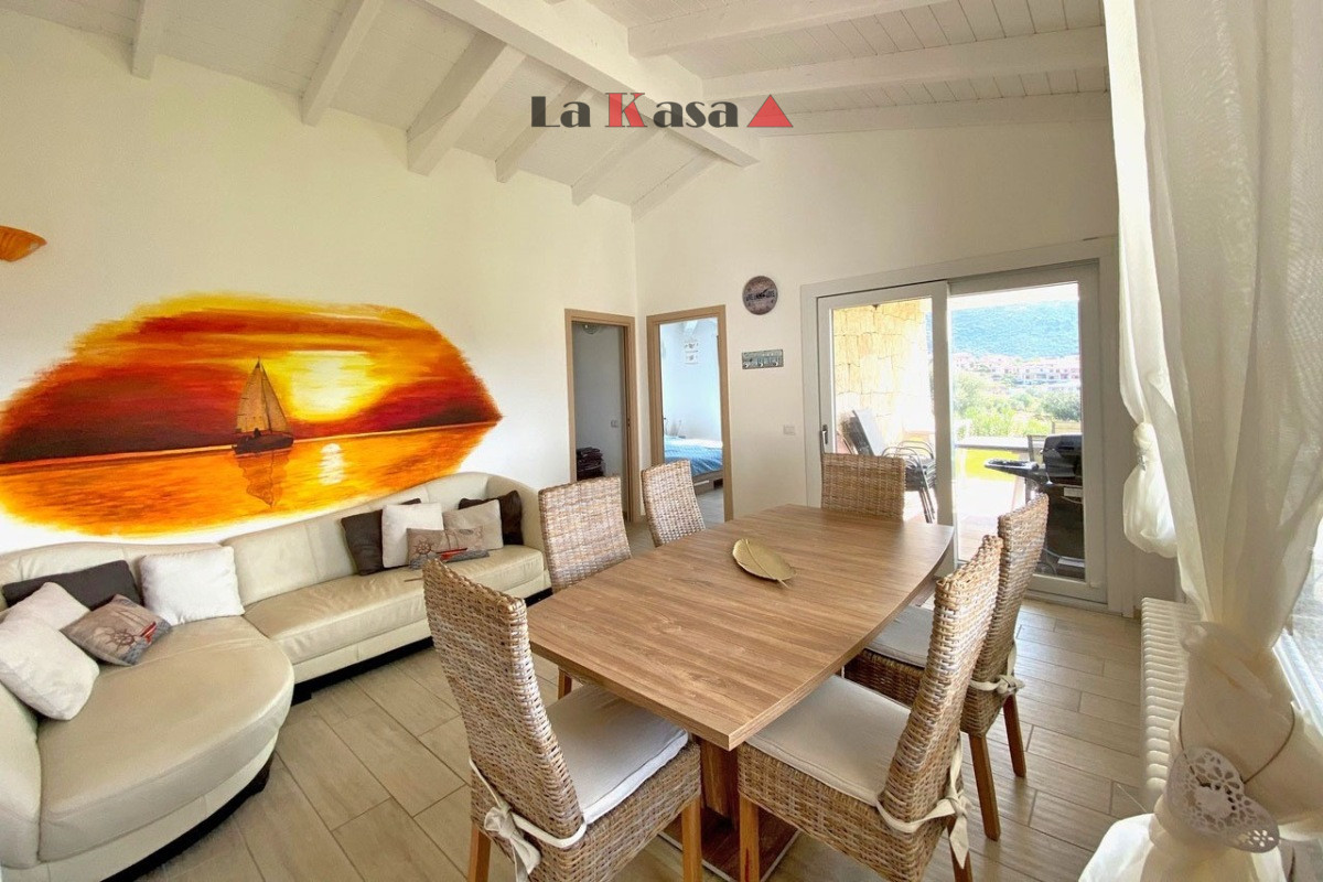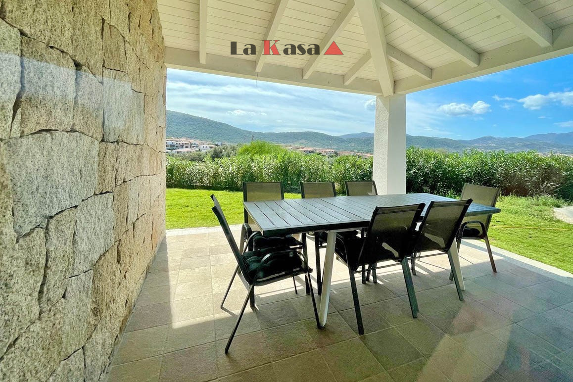The villa offers approximately 112 sqm of living space plus about 60 sqm of covered verandas and terraces, ideal for enjoying the Sardinian outdoor lifestyle.